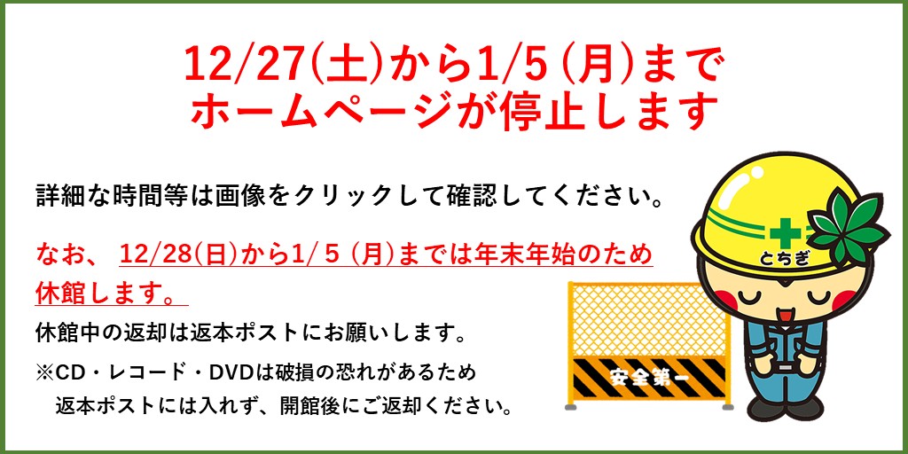 毎週月曜日・毎月第4木曜日・12月28日から翌年1月4日まで・年2回の特別整理期間