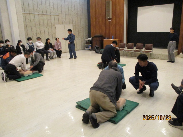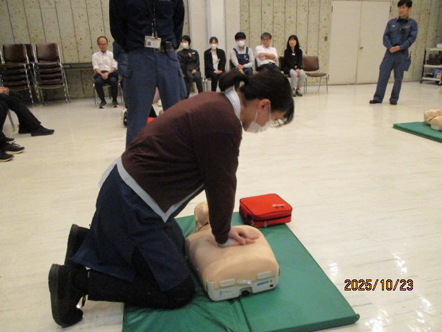 休館日である10月23日(木)に、図書館職員が救急指導を受講しました。