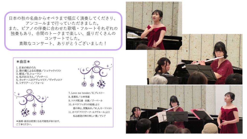 ◇内 容 うたとフルートで綴る午後のひととき~秋の名曲コンサート~
